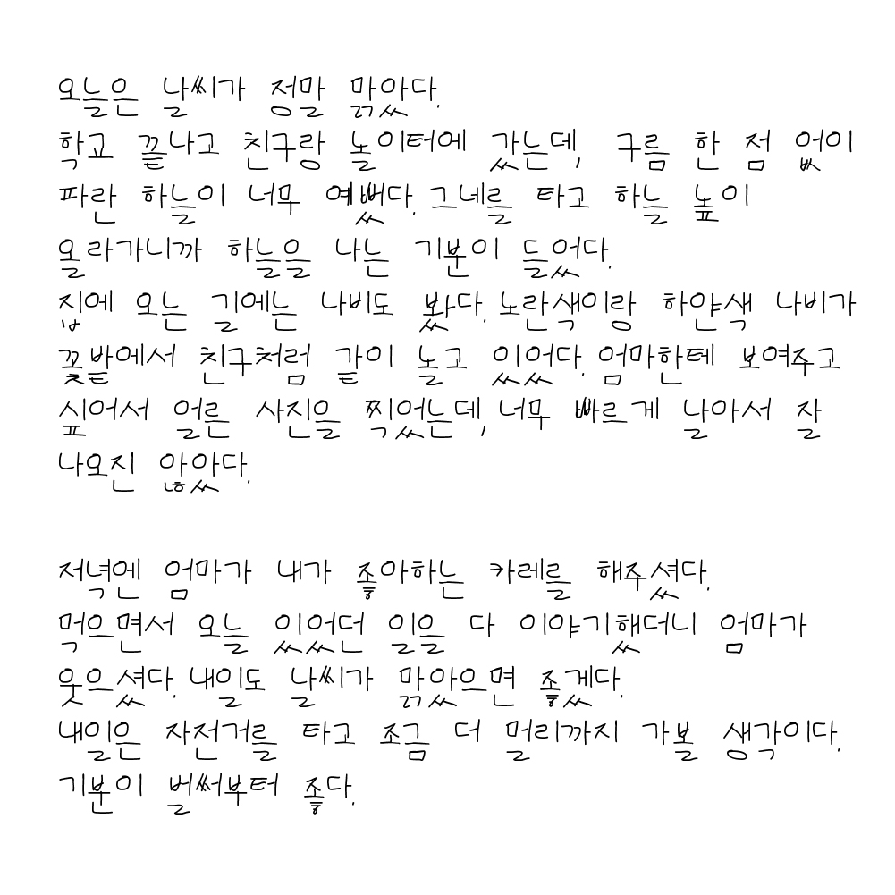 따뜻한 손글씨의 매력을 느낄 수 있습니다.